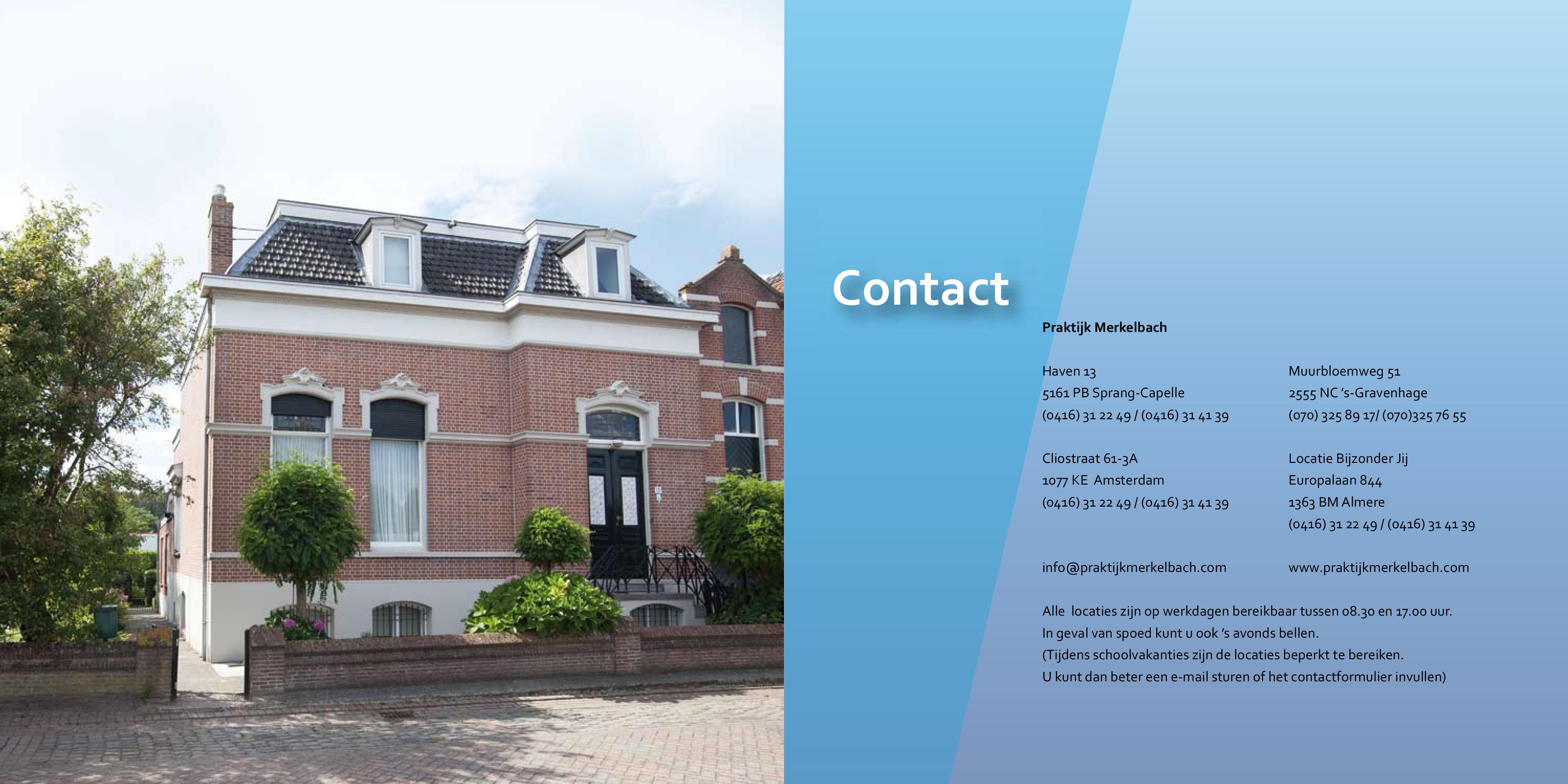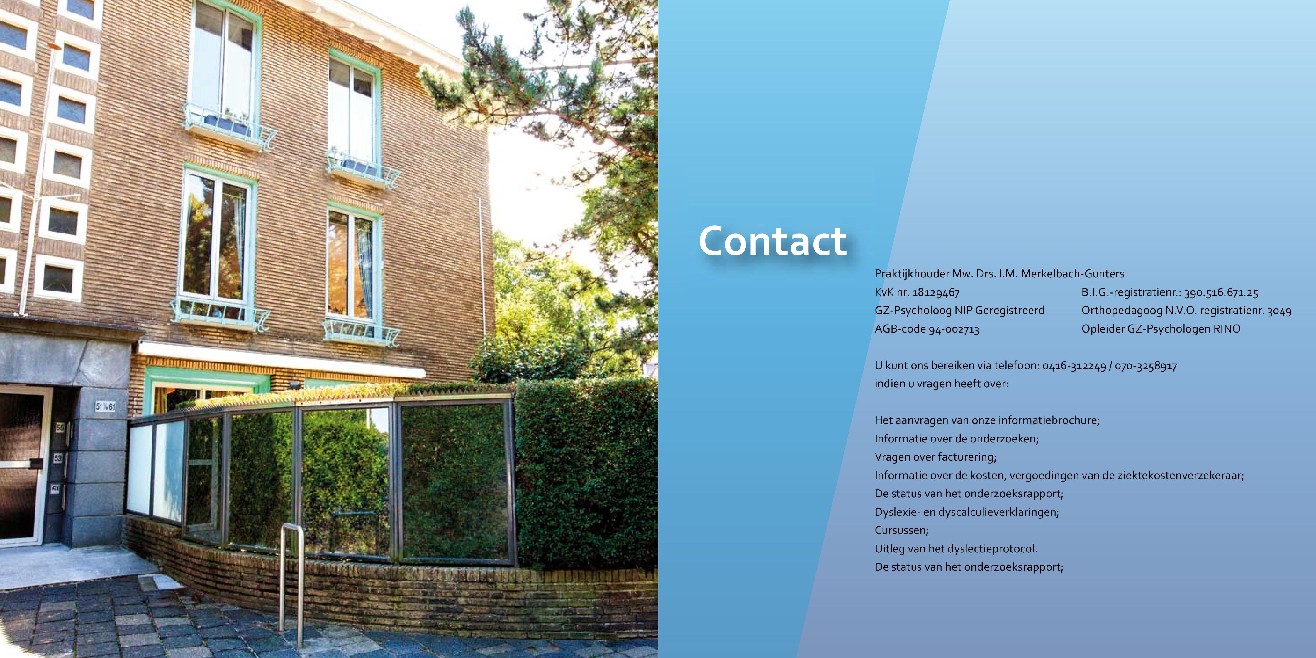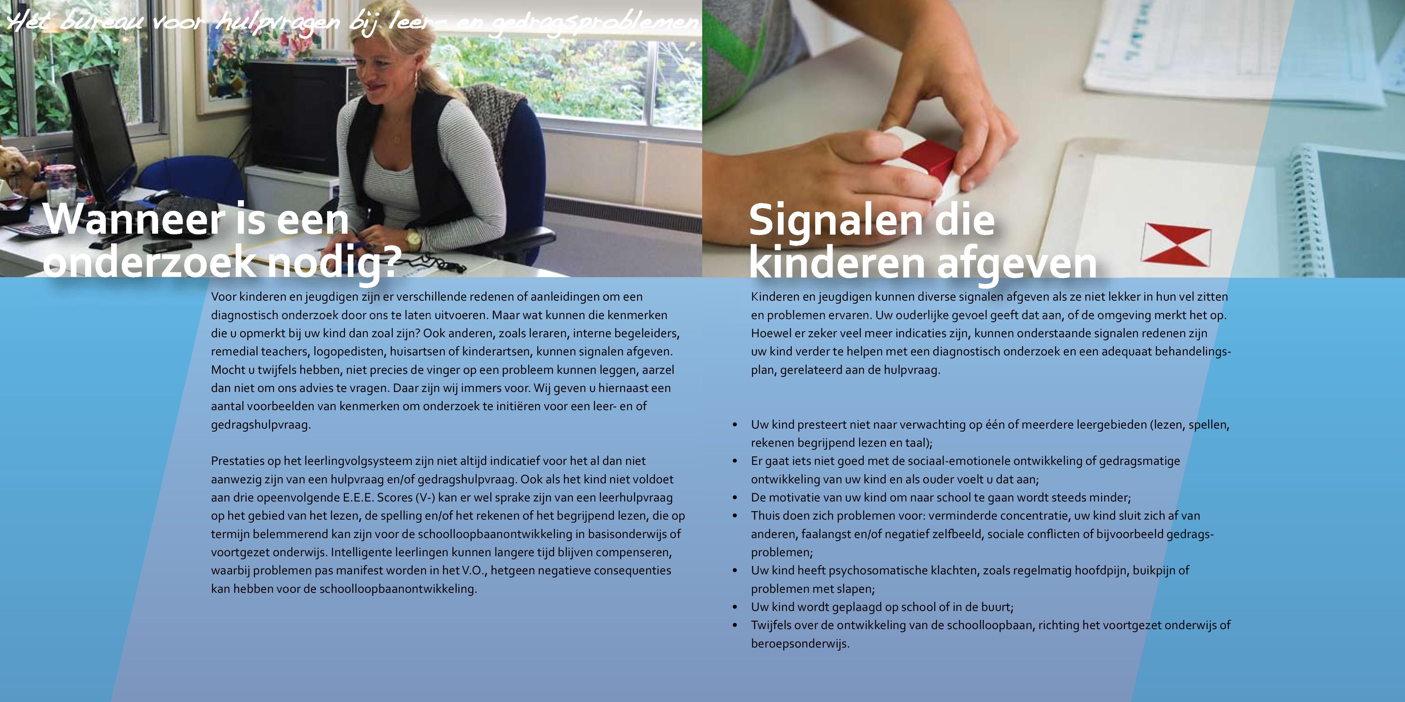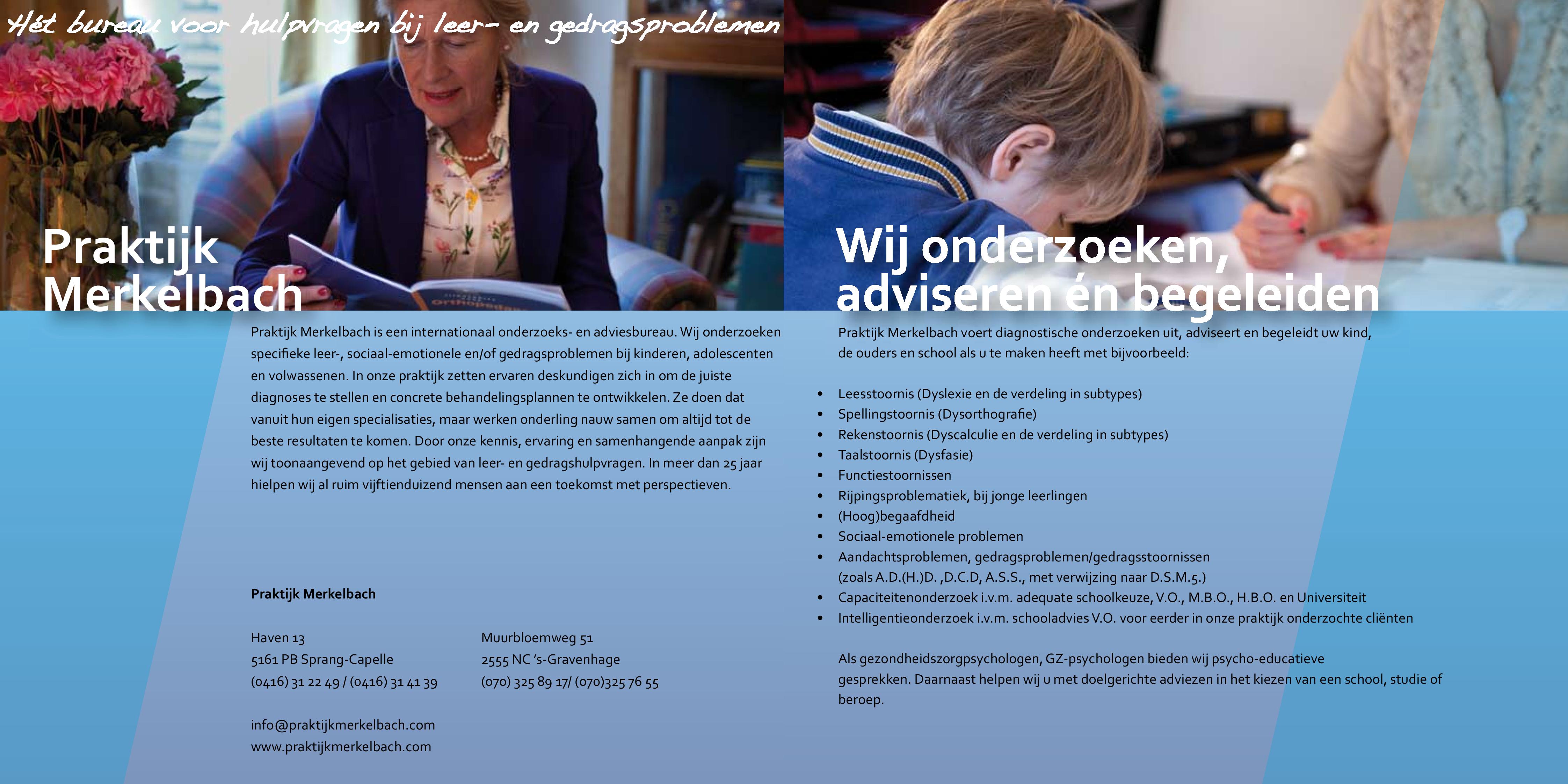 Praktijk Merkelbach voert diagnostische onderzoeken uit, adviseert en begeleidt uw kind, de ouders en school als u te maken heeft met bijvoorbeeld: