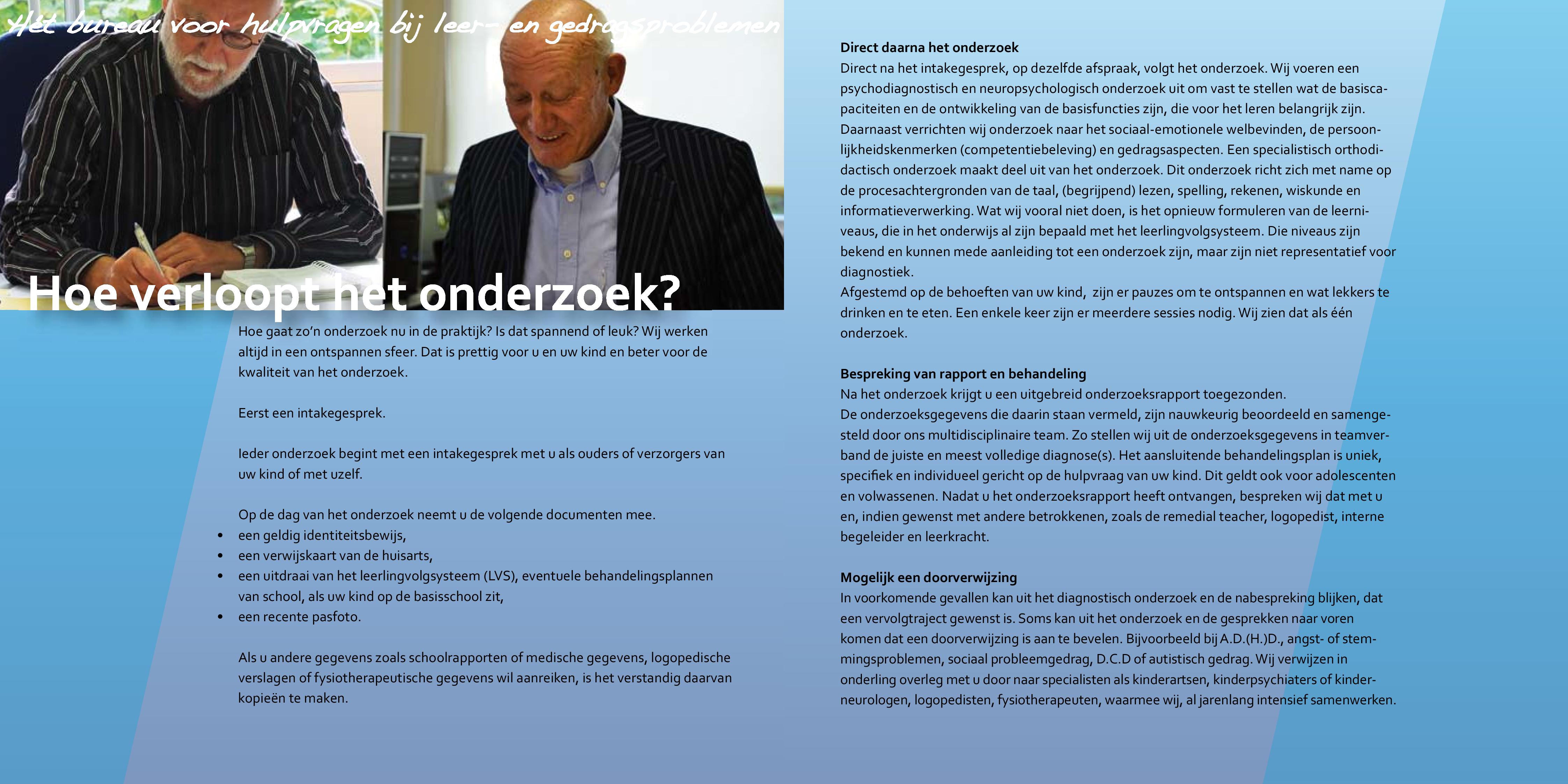 Hoe gaat zo’n onderzoek nu in de praktijk? Is dat spannend of leuk? Wij werken altijd in een ontspannen sfeer. Dat is prettig voor u en uw kind en beter voor de kwaliteit van het onderzoek.